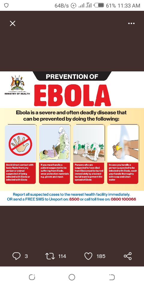 Posted on by Tweet from MugerereEdward @WHO @WHO_Europe @pahowho @WHOEMRO @WHOWPRO @WHOSEARO @WHOAFRO NO EBOLA in Uganda 👇👇 https://t.co/oplczwOwho